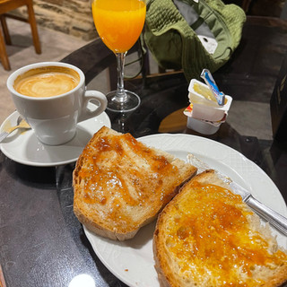 7;54am - had a good night sleep (only woke up twice). It’s still dark outside, very cold and low clouds over the mountain. I have a short 2 hour ascent (a hard one). So breakfast is a must - today we have Strawberry and Peach Jam!! With coffee and juice - €4.50.
